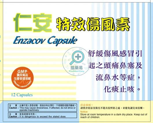 仁安特效傷風素(ENZACOV CAP) — 非處方藥 — 香港登記藥品|搵藥易 FindMed Easy