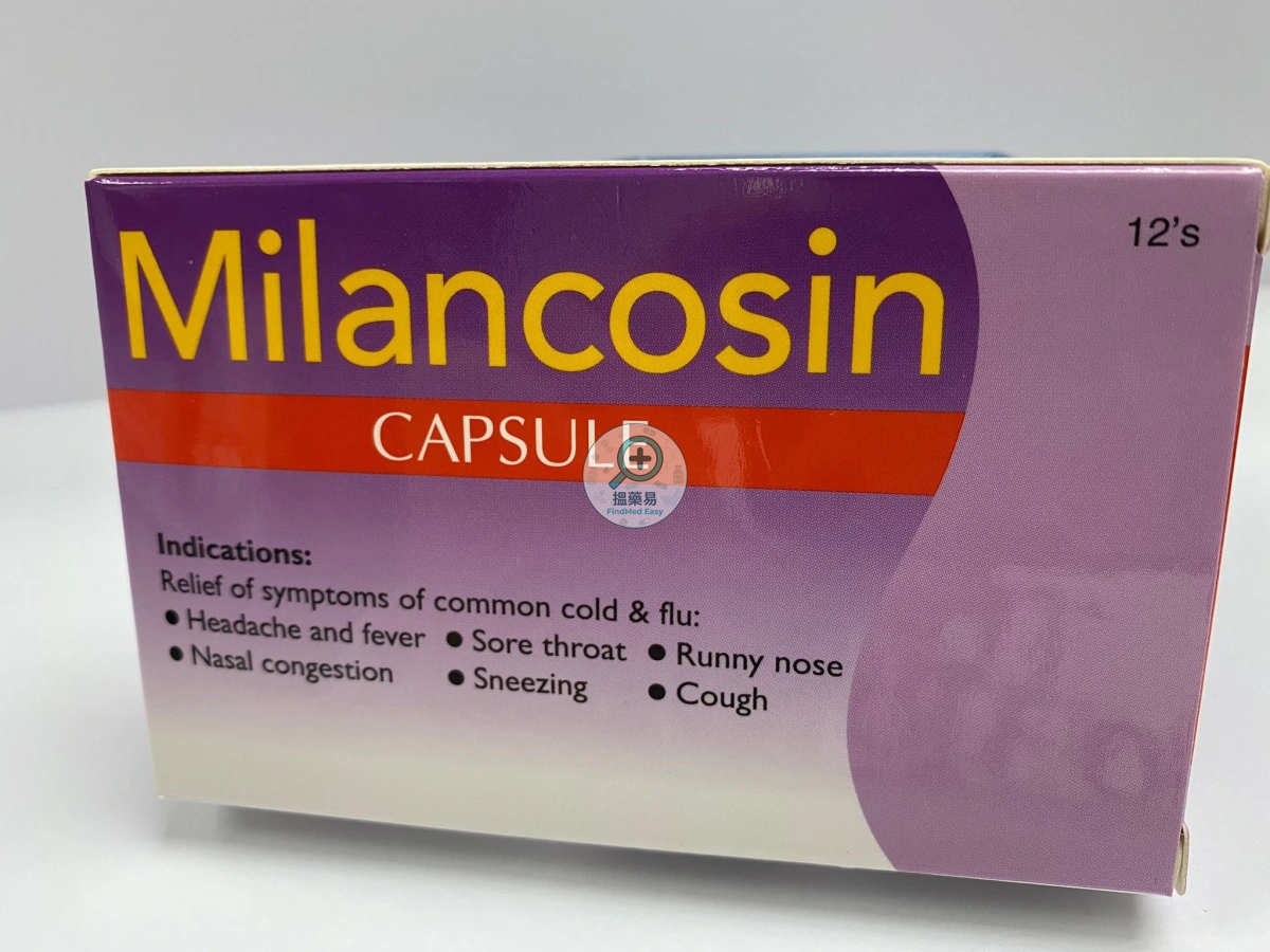 MILANCOSIN CAP 是一種綜合感冒藥,用於緩解傷風感冒引起的多種不適症狀。它結合了止痛退燒、化痰止咳、收鼻水及抗過敏等多種功效。